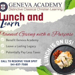 Bring your child and discover Geneva while class is in session! For More Information: (541)637-7500 Info@GenevaRoseburg.com K3-12th Grade Campus 2245 NW Kline Street, Roseburg, Oregon 97471