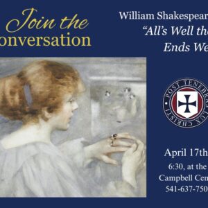 William Shakespeare’s “All’s Well that Ends Well” Join at the Campbell Center for our last “Join the Conversation” of the school year! In May our students will be performing this delightful play and this is our opportunity to get acquainted with it beforehand. Come at 6:30pm for fellowship, refreshments, and an invigorating taste of the […]