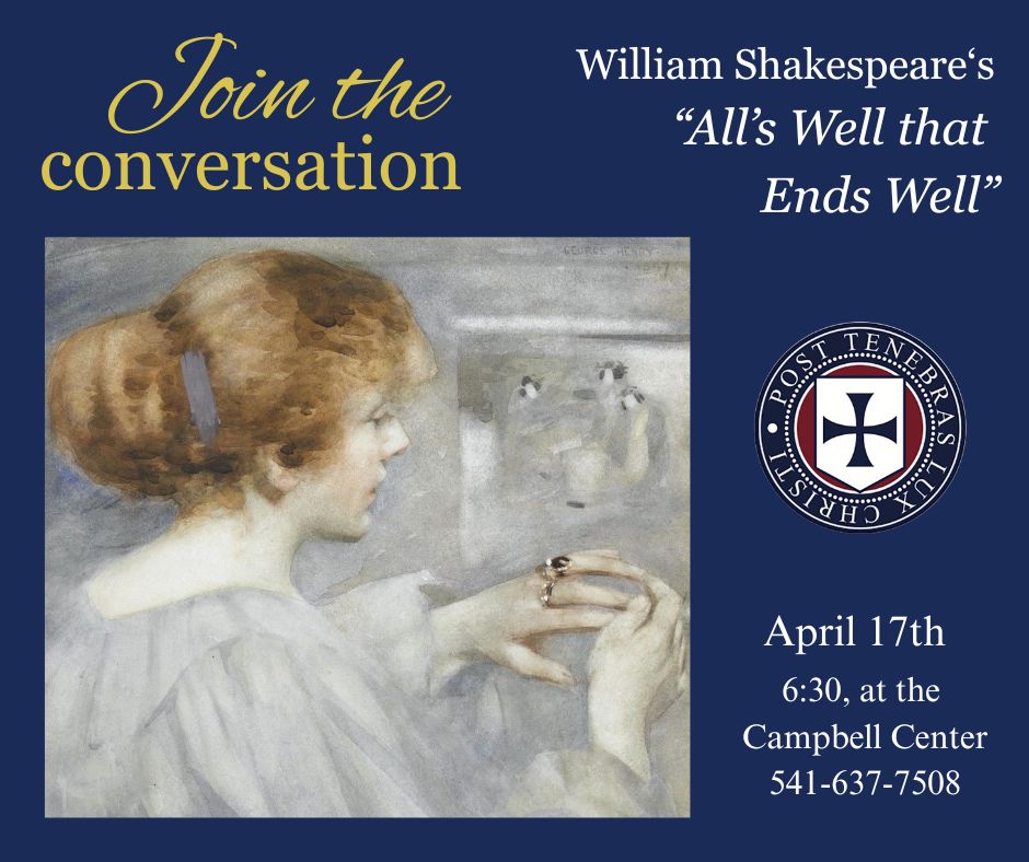 Join at the Campbell Center for our last “Join the Conversation” of the school year! In May our students will be performing this delightful play and this is our opportunity to get acquainted with it beforehand. Come at 6:30pm for fellowship, refreshments, and an invigorating taste of the humanities.